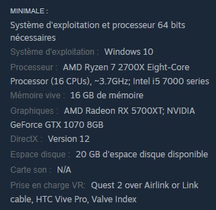 Pour info, la config mini écrite sur la page Steam :