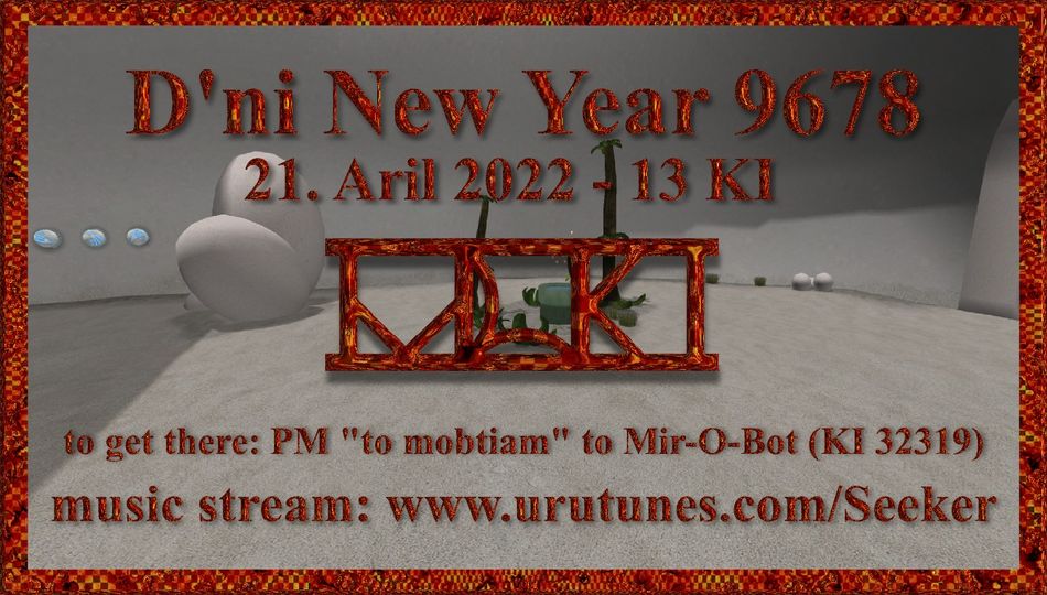 Posté le: Lun 04 Avr, 2022 08:38 AM Sujet du message: D'ni New Year 9678 - 21 Avril 2022 - 13KI |