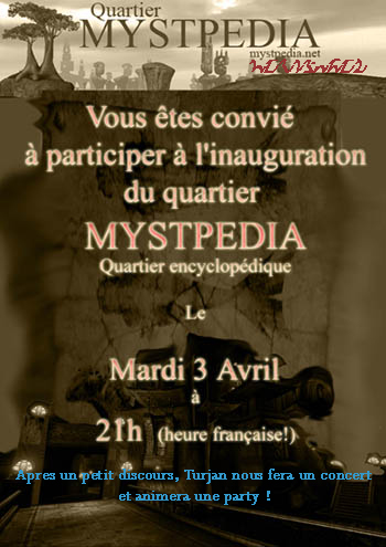 Posté le: Sam 31 Mar, 2007 13:30 PM Sujet du message: Innauguration du quartier myst pedia |